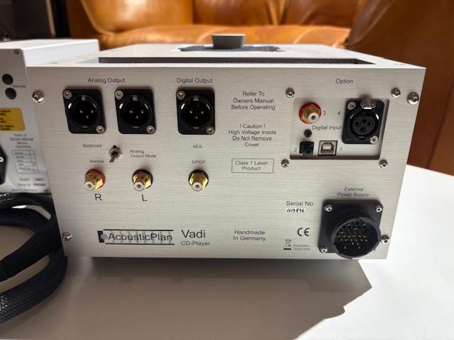 SOLD. We are selling a beautiful AcousticPlan Vadi CD - Player with its optinal DAC. Remote is missing but can be ordered by Bentlage Medientechnik, in Bielefeld, Germany. The item is in mint condition and sounds still excellent also as CD - drive. You can use also a remote control with the Philips code 5. You will find some reviews in the www. Pickup only.
