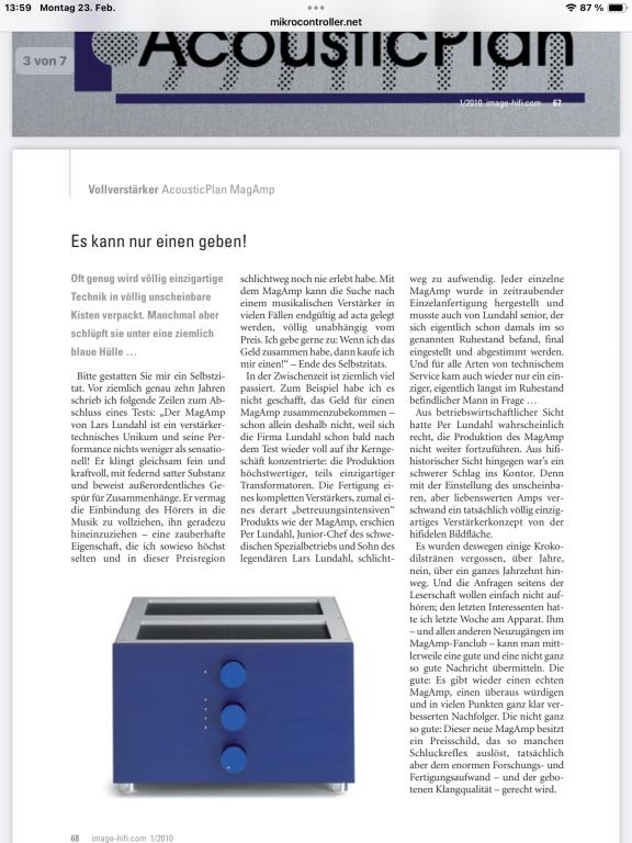Wer die passenden Lautsprecher hat wird mit Klang des MagAm sicherlich glücklich werden, die Qualität des Verstärkers ist für sich betrachtet ausserordentlich.