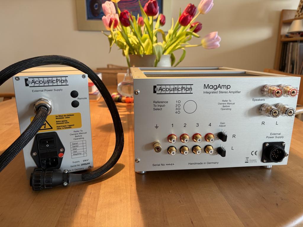 Ich habe den MagAmp sorgfältigst in die Originalverpackung mit allen erwähnten Zutaten eingesetzt und er sollte auf diese Weise auch bei einem Versand gut ankommen können. Da der Hersteller (Hr. Claus Jäckle) von AcousticPlan in etwa 2021 seine Tätigkeit eingestellt hat, wurden allfällige Service-/Ersatzteile- und Reparaturangelegenheiten an die Firma „Medientechnik Bentlage“ in Bielefeld übergeben (siehe entsprechende Internetseite).