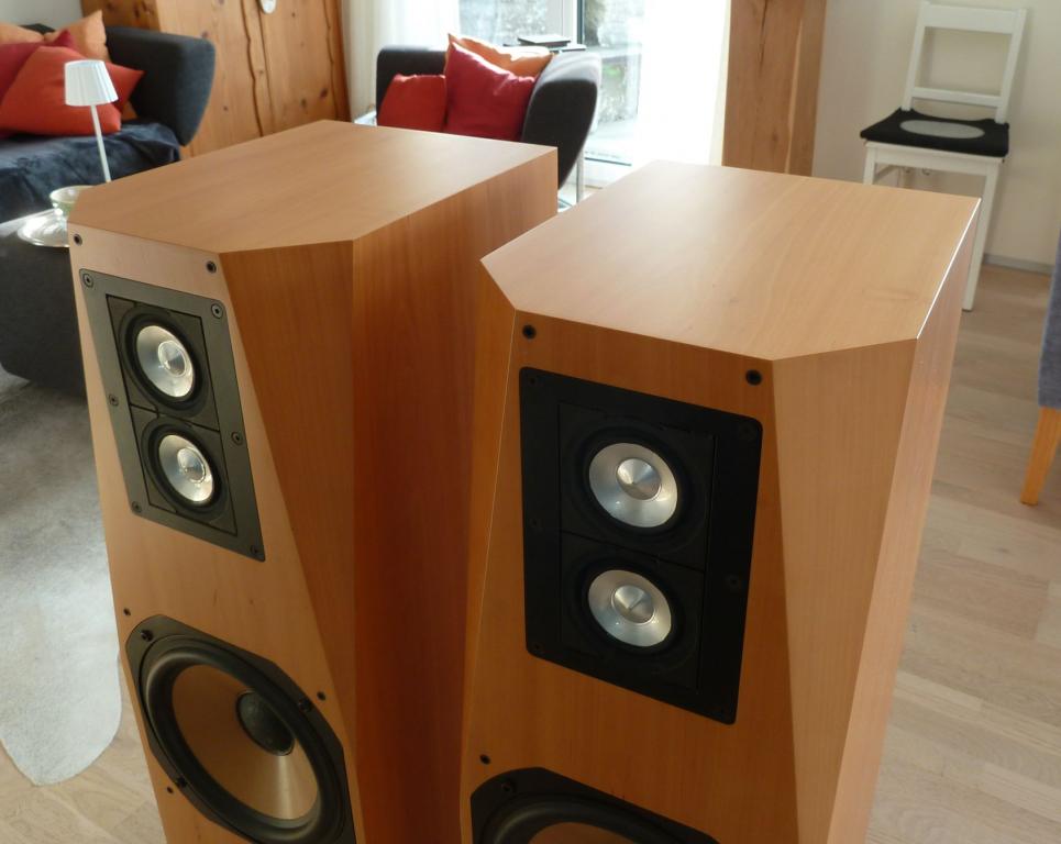 Angeboten werden ein Paar Raga Lautsprecher von AcousticPlan. Die Lautsprecher sind in neuwertigem Zustand, ausser einigen kleinen "Dellen" in den Jordan Modulen. Die Funktionsweise oder der Klang ist dadurch nicht beeinträchtigt. Die Lautsprecher sind echtholzfurniert und sind seidenmatt lackiert.