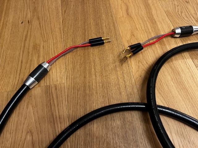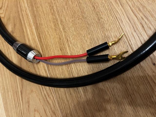 lenght 2,5 m, spades and bananas plugs interchangable, original wooden box. Very rare on second-hand market.
