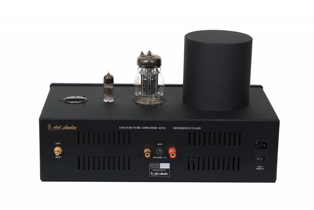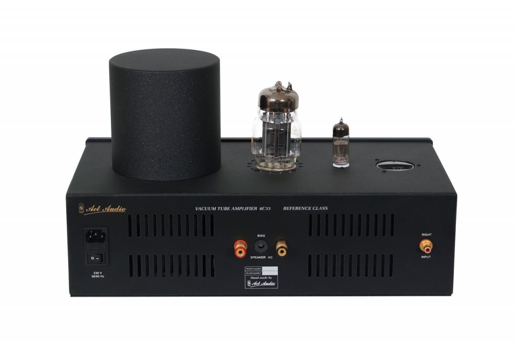 The unique handmade Act Audio 6C33 vacuum tube amplifier is a single ended pure Class A, 15 watt monoblock with an indirectly heated triode. It is a high end audiophile unit. The driver tubes are 6N6P. Monoblocks have fixed bias and point-to-point internal wiring. Output tubes are 6S33S-V. The output transformer has a double C core. The mains transformer is toroidal. The monoblock amplifier has AuriCap and ClarityCap output capacitors. The entire chassis surface is plated with copper and finished with a plastic coating.