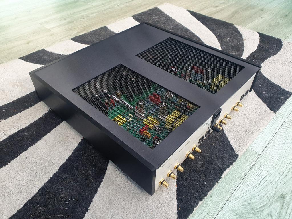 Der ferngesteuerte Röhren-Phonoverstärker Rhea von Aesthetix eignet sich für anspruchsvollste Tonabnehmer, einschließlich MC-Systeme mit geringer Ausgangsspannung. Dank einer eigens entwickelten Schaltung erzielt er hohe Verstärkung bei extrem niedrigem Rauschen. Er verfügt über drei separat nutzbare Eingänge.