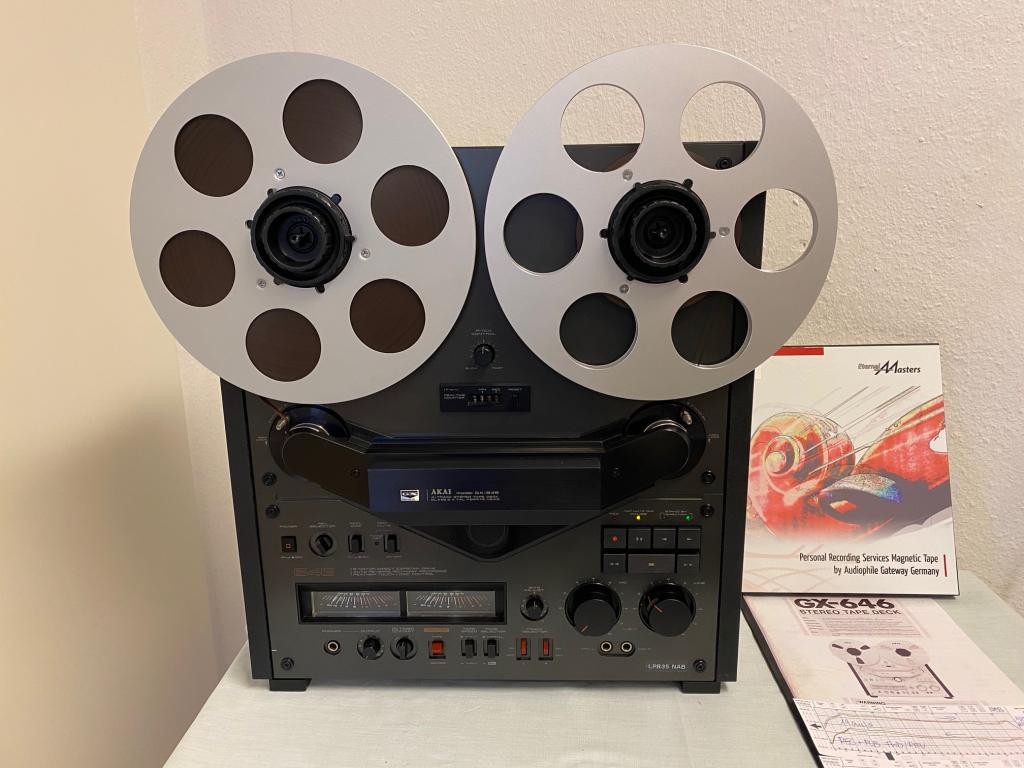 Es gehören die deutschsprachige Bedienungsanleitung (Kopie), zwei Original Akai NAB-Adapter sowie die Messschriebe des Neutrik Audiographen zum Angebot.