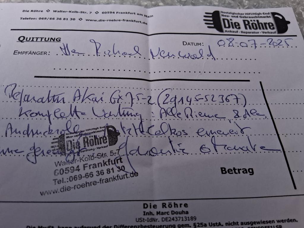 Der Cassetenrekorder Akai GX 75 mk2 gehört zu den besten High-End Recorder 3 köpfegrät, das gerät wurde komplett überarbeitet. Siehe Garantie und daher Top Zustand. Da ich zwei geräte besitze trenne ich mich von einem. Vier original verpackte Kassetten gebe ich dazu.