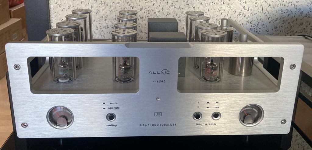 The H-6500 is basically a vacuum tube phono amplifier with 2 sets of MM and 2 sets of MC inputs, RIAA curve correction through an LCR filter, and a separate power supply unit in a separate chassis. MC boosting is done through a built-in permalloy core step-up transformer with 4 winding ratios, and MM amplification is done through 5842 triodes inserted 4 per channel. MM voltage gain is 40dB, MC voltage gain is 62dB, 66dB, 68dB, 72dB.