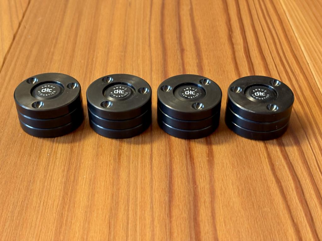Die Darkz leiten unerwünschte Vibrationen wirkungsvoll von Geräten und Lautsprechern ab. Es handelt sich hier um die Premium-Version DTC. Sie sorgen für eine markante Steigerung der Klangqualität – die Musik klingt offener, detaillierter, räumlicher und zugleich organisch. Sie sind vor allem für High-End-Systeme gedacht, bei denen der letzte Schritt zur Perfektion und Musikalität gesucht wird. Im Vergleich zu den späteren Modellen zeichnen sich diese Darkz selbst zum Neupreis durch ein überragend gutes Preis-Leistungsverhältnis aus.
