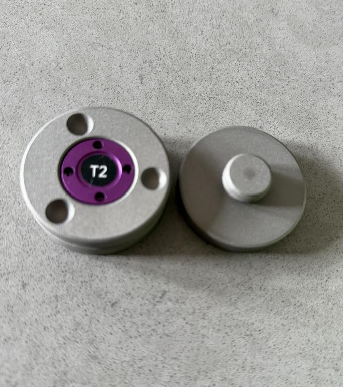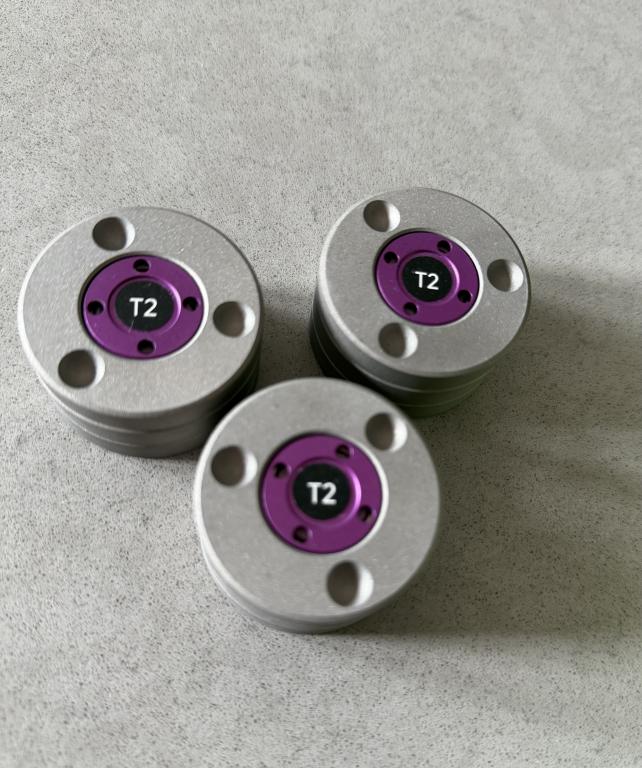 Three Ansuz high end Acoustics Darkz T2 Adjustable Resonance Control tuning feet in a very good condition. It is crucial that the audio devices are relieved with an even load on every Ansuz Darkz resonance control device. The advantage of the T2 Adjustable is to optimise this load to each feet.