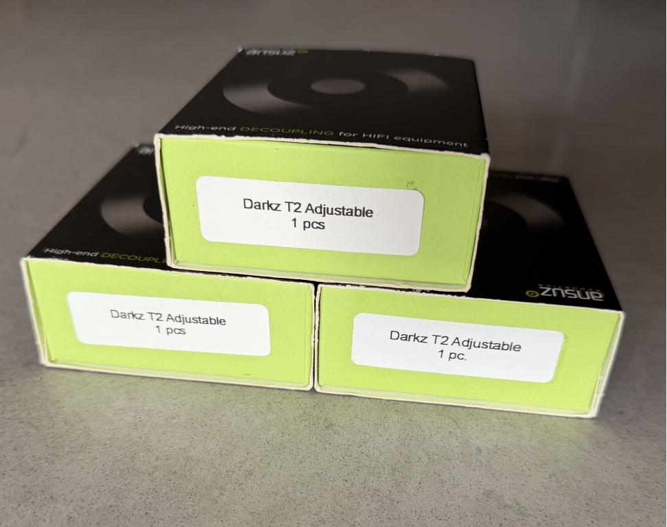 Ansuz Darkz adjustable absorb vibrations that are not directly related to the signal path. The absorption results in an audible vibration feedback, which affects the sound quality in a remarkable and positive way. It is the natural and authentic sound that Ansuz Darkz devices are designed to preserve. The sound improvement of the T2S Adjustable is big leap forward compared to the cheaper models. New price is €2760,--. Now for €1295,-- for 3 pieces Paypal +5%