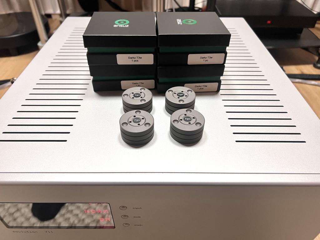 I am selling my almost new Ansuz Darkz T3W feet (set of 4). Both technically and cosmetically perfect. Sonically much better than the T2s. Complete with original packaging. Worldwide shipping. I always only charge actual shipping costs. PayPal +3%.