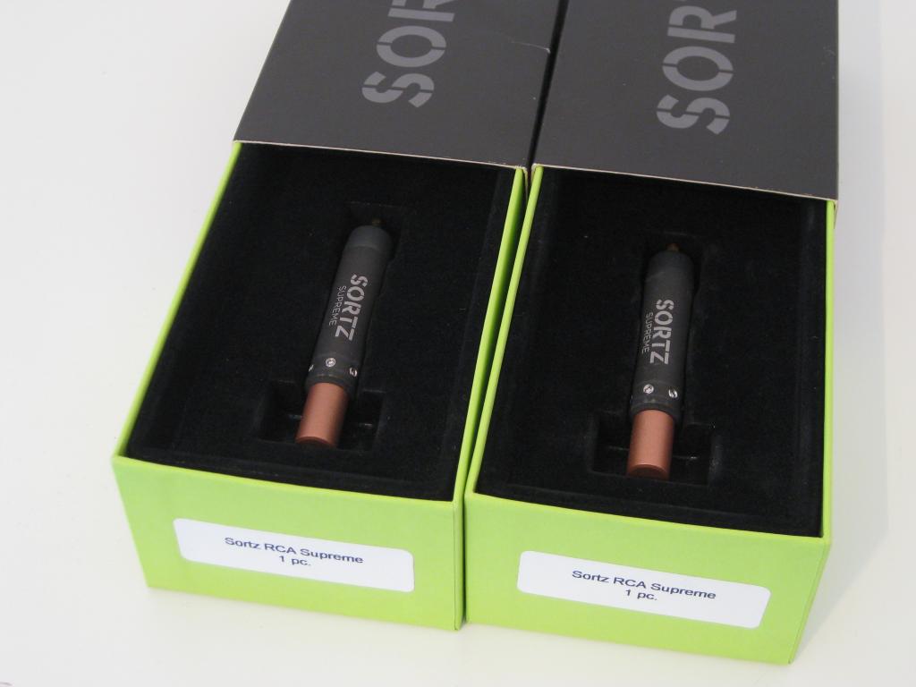 Angeboten werden insgesamt 2 Stück Ansuz Sortz RCA (für Cinch-Ein- oder Ausgänge) in der Supreme-Ausführung. Der UVP lag bei 1.000 Euro je Stück.