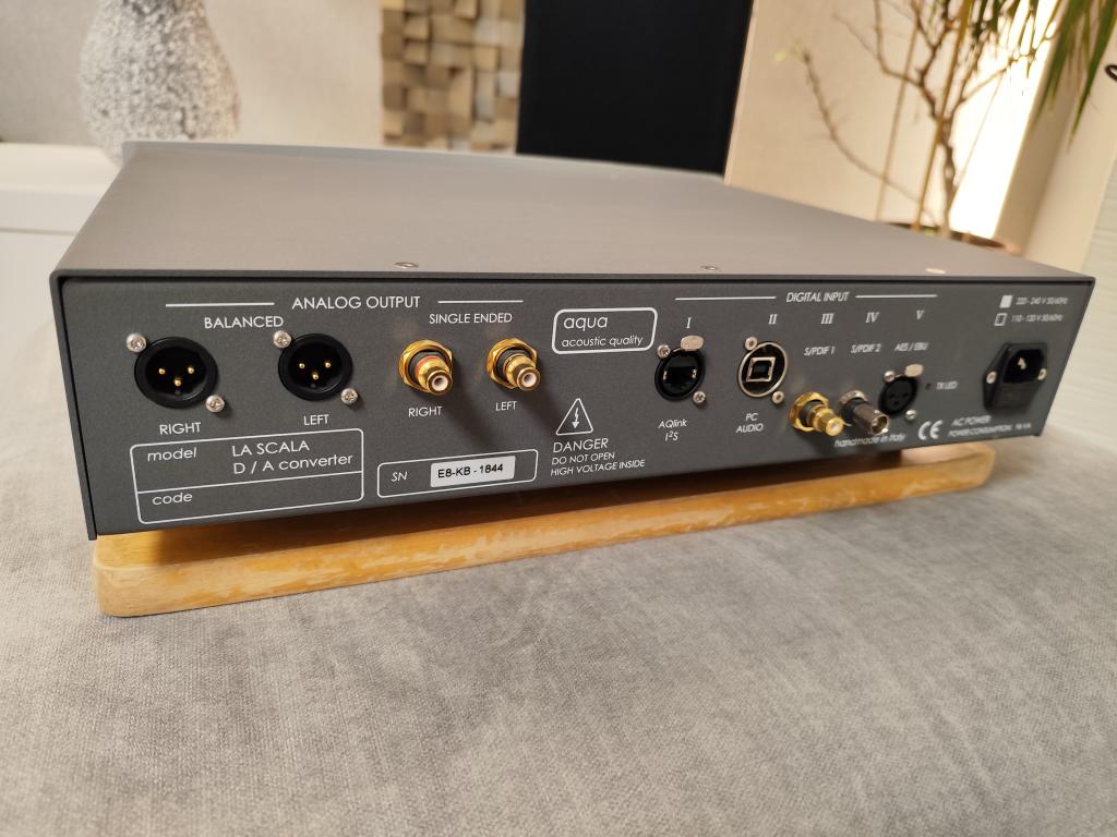 Aqua Acoustic Quality La Scala MK2 Optologic D/A converter, perfect, scratch-free condition for sale. I am the first owner. Original double box. Can be picked up in Hungary or sent in a package. (My own pictures) And for sale is a matching Aqua Acoustic Quality LinQ, DLNA card version, perfect condition. No scratches and stains, both devices are like new.