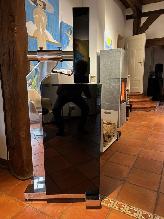 Originalzustand in Klavierlack schwarz mit verchromtem Untergestell.
