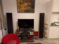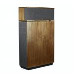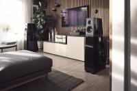 Die aufwändige 2,5 Wege-Konstruktion mit leicht nach hinten geneigter Schallwand und einem schlitzartig über der Fußkonstruktion mündendem Bassreflexkanal bietet zudem über einen Klangschalter auf der Rückseite eine Frequenzganganpassung für die Höhen und Mitten an den Hörraum und den eigenen Hörgeschmack.