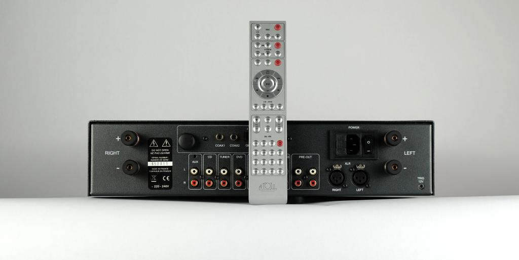 Bedient wird das ganze durch zwei große Drehknopfe mit Digitalencodern. Das Display ist natürlich (!) vom neuesten, störungsfreiesten OLED-Typ und die hochwertige IR-Fernbedienung ist ebenfalls obligat!