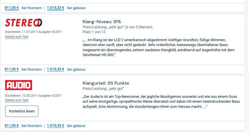 Einige Test beweisen die erstklassige Klangqualität dieser High End Kopfhörer.
