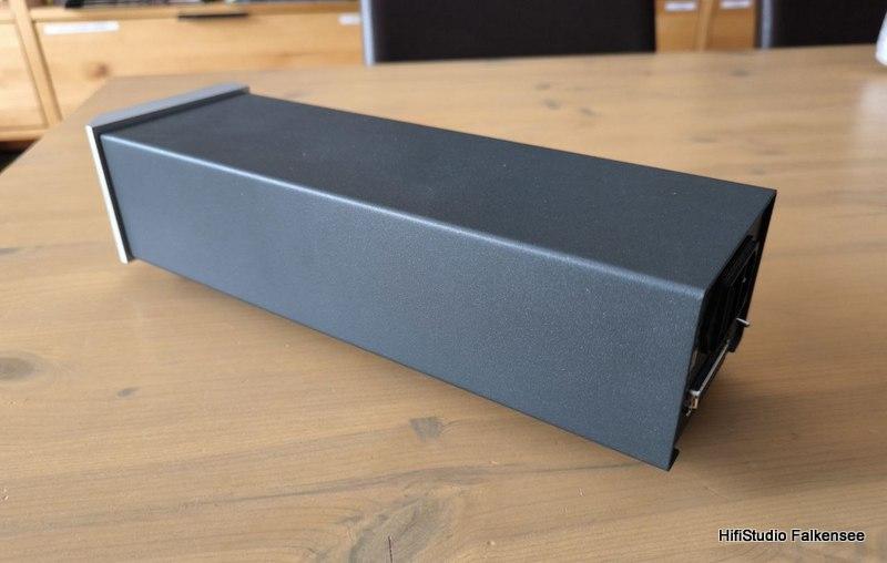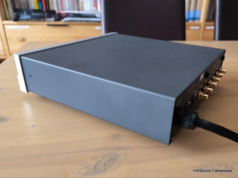 Serienmäßig wird die Phono mit einem Set MM- und einem Set MC-Modulen geliefert, es sind jedoch Sonderwünsche wie 2x MC oder 2x MM möglich. Die mitgelieferten Parallelwiderstände oder Kapazitäten werden direkt neben den Eingangsbuchsen auf der Rückseite für optimale Wirkung in der Transimpedanz-Schaltung eingesteckt. Kundenspezifische Werte sind auf Wunsch möglich. Das Netzteil, mit separaten Trafos für die Bedienfunktionen und die Audioschaltung, ist ausgelagert und kann neben der Phono platziert werden, die dann auf 42cm Breite anwächst.
