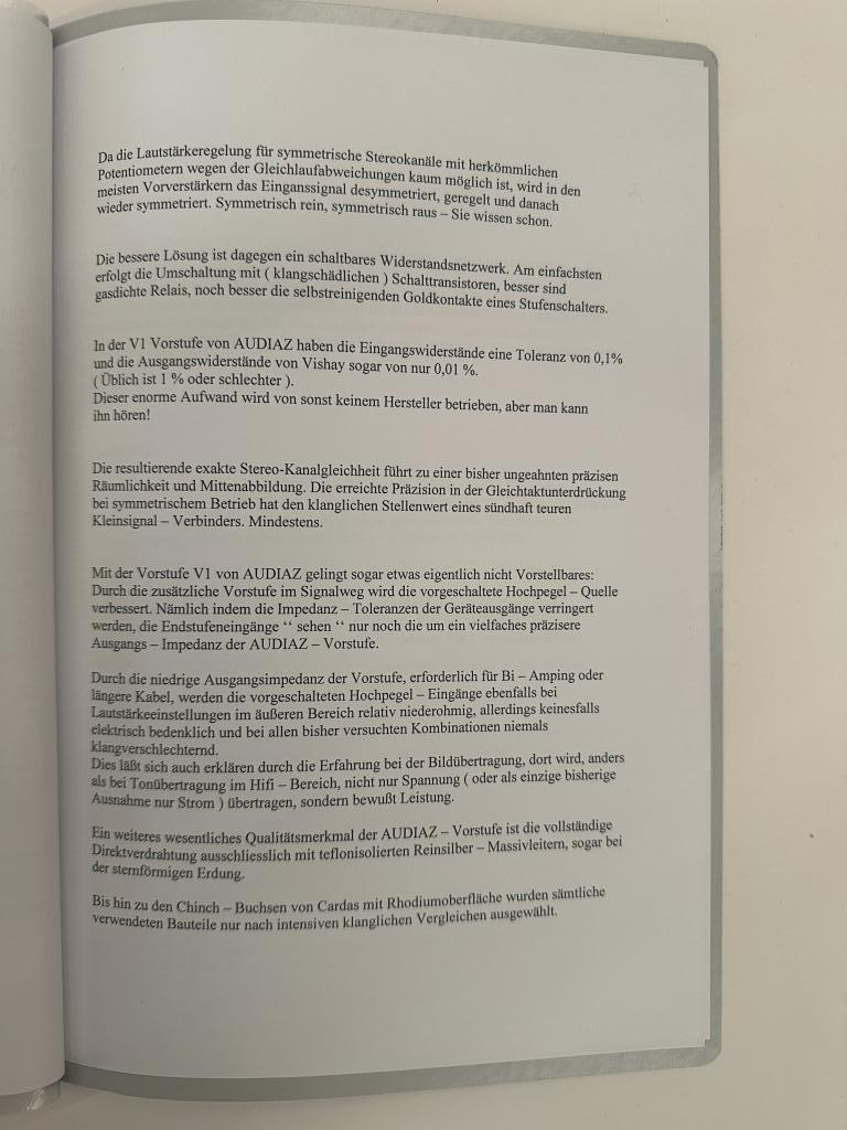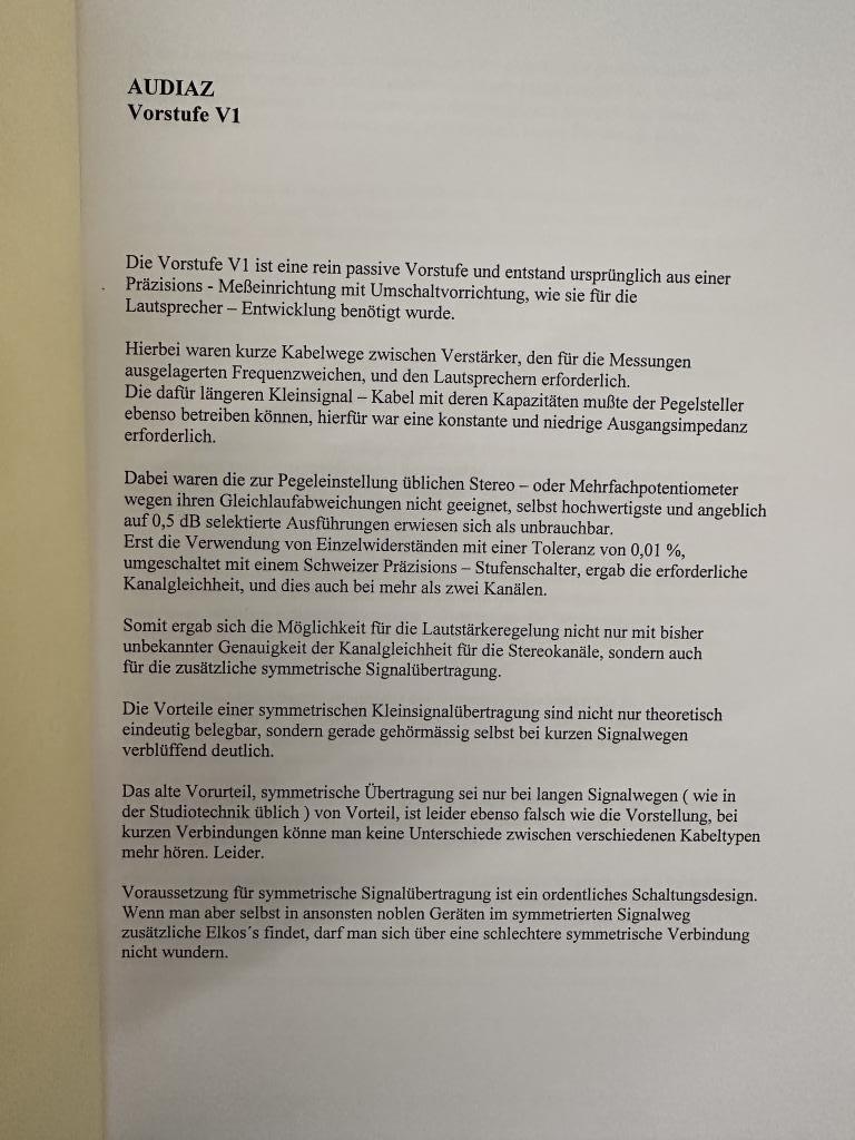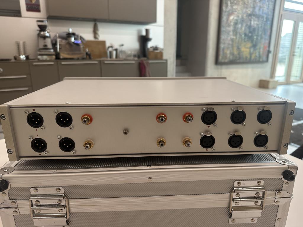 Ich verkaufe eine extrem seltene und nur in ganz limitierten Stückzahlen, von Herrn Dr. Helmuth Weber produzierte, Passive Vorstufe. Sie bietet eine unglaublich präzise und neutrale tonale Wiedergabe. Herr Dr. Weber hat sie auch in seinen Referenz- Vorführketten im Chiemsee Hifi Studio des öfteren integriert. Die nähere Beschreibung über diese passive Referenz-Vorstufe können Sie unter den angehängten Fotos lesen, in denen ich die Bedienungsanleitung abgelichtet habe. Die Vorstufe leitet ohne Strom, mit in höchster massiver Qualität verarbeiteten Bauteilen, durch vollständige Direktverdrahtung mit Teflon isoliertem Reinsilber, die Signale neutral weiter und hat quasi keine technische Abnutzung. Verkauft wird sie mit dem original Alu- Koffer und Bedienungsanleitung. Es handelt sich um einen Privatverkauf mit obligatorischem Ausschluss der Rücknahme und Gewährleistung.