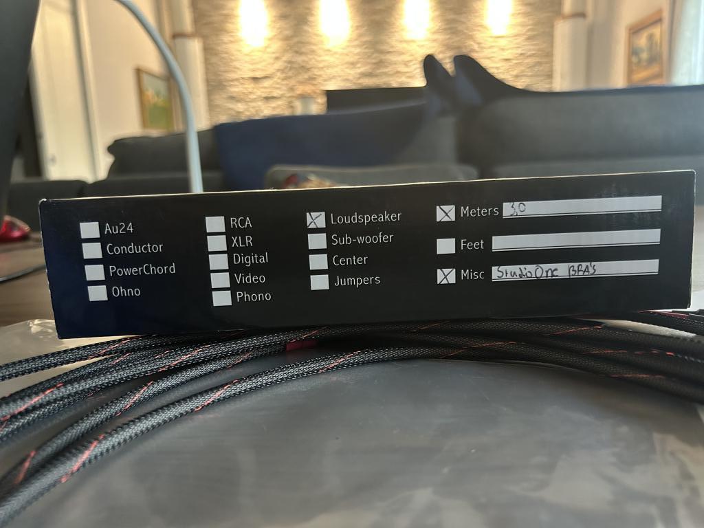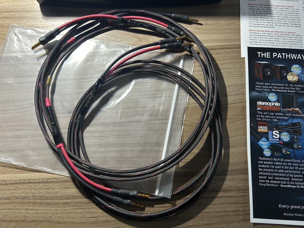 I'm selling a pair of Audience Studio One speaker cables with banana-banana , 3m like new, with the original box.