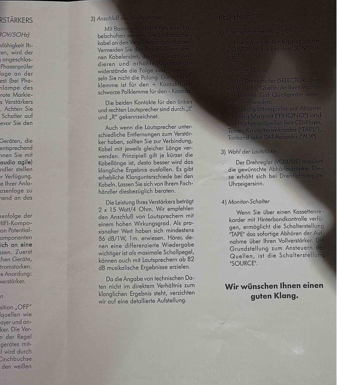 Überragender Vollverstärker made in Germany , in sorgfälltiger Handarbeit gebaut. Der Klang ist sehr räumlich, tranzparent, musikalisch und sehr dynamisch.