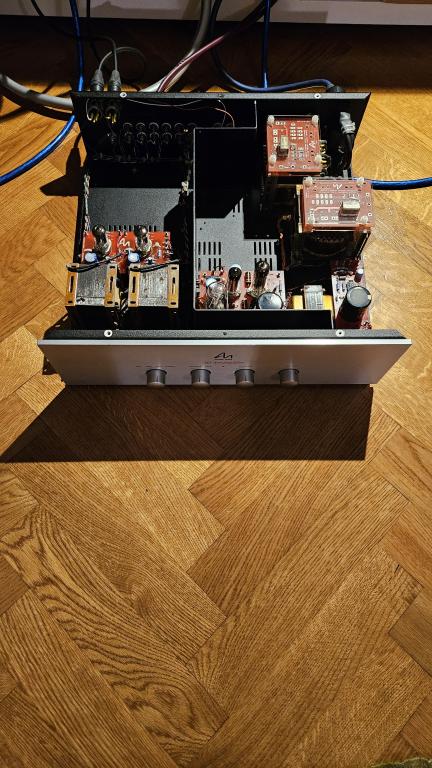 Audio Note M3 line in perfect working condition, complete with original packaging, I only report a small cosmetic defect on one side. The preamplifier has just been re-valved with quality NOS tubes (6x5 and 5687 Tung sol, OB2 Telefunken and ECL82 Mullard). It is being sold only due to a pernicious upgrade ilness...