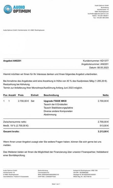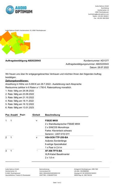 Audio Optimum FS82E MKIII Aktivlautsprecher, Klavierlack schwarz, 3,5 Jahre alt, technisch neuwertig, optisch nahezu neuwertig, inkl. aufpreispflichtigem längeren Kabel zu den Sincos Amps (2,4m), Upgrade Ende 2023 auf aktuelle Version (Boxen waren zu dem Zeitpunkt noch kein Jahr alt)