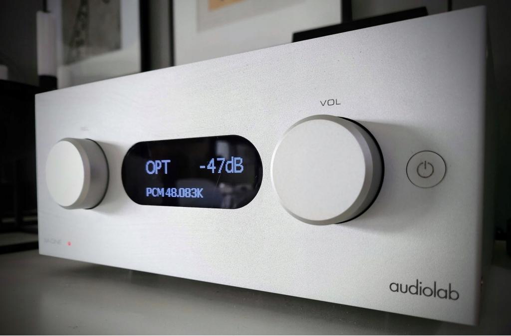 Äußerlich ist der M-ONE fast identisch mit dem M-DAC +, der Flaggschiff-DAC-Komponente von Audiolab. Er verfügt über dasselbe kompakte Aluminiumgehäuse, das klein genug ist, um unauffällig auf einem Schreibtisch, Tisch oder Regal zu stehen, mit demselben zentralen OLED-Display und elegantem Doppelrotationsschema. Während eigenständige DACs eine separate Endstufe benötigen, um ein Lautsprecherpaar anzusteuern, packt der M-ONE eine Stereo-Leistungsverstärkung von angemessen hoher Qualität sowie Vorverstärkerfunktionen für analoge und digitale Quellen in sein kleines Gehäuse.