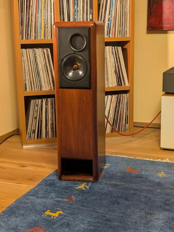 Im Angebot sehen Sie ein Paar kompakte Standboxen auf Basis der Audiolabor Spontan MK1 - jedoch dramatisch verbessert bei Chassis, Weichen, Abstimmung.