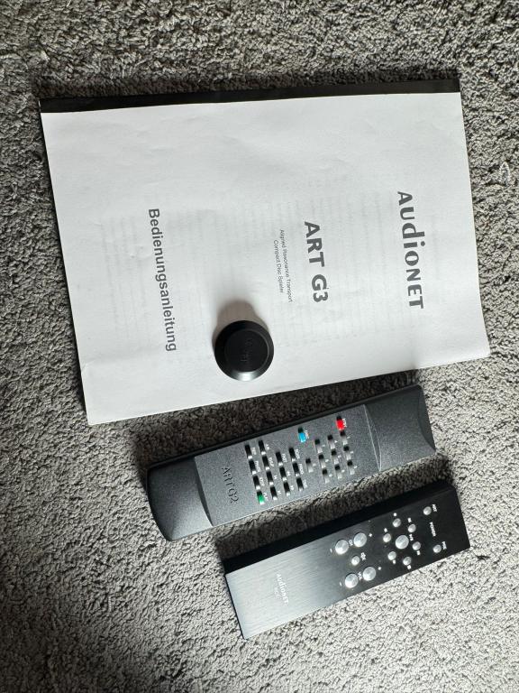 Im Lieferumfang enthalten ist: AudioNET ART G3, Netzkabel, Anleitung, 2x Fernbedienung und die originale Verpackung.