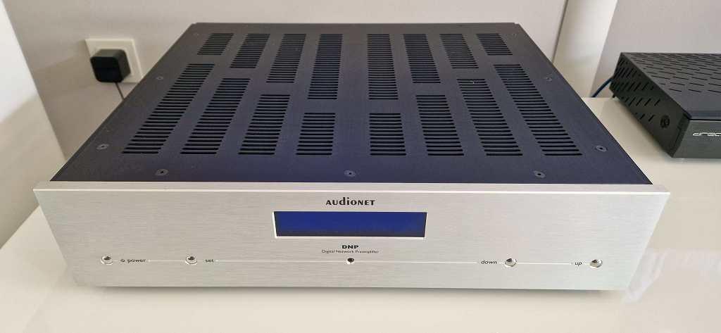 Netzwerk-Vorverstärker in Silber mit blauer Displayfarbe. Das Gerät kann bei Abholung vorgeführt werden.