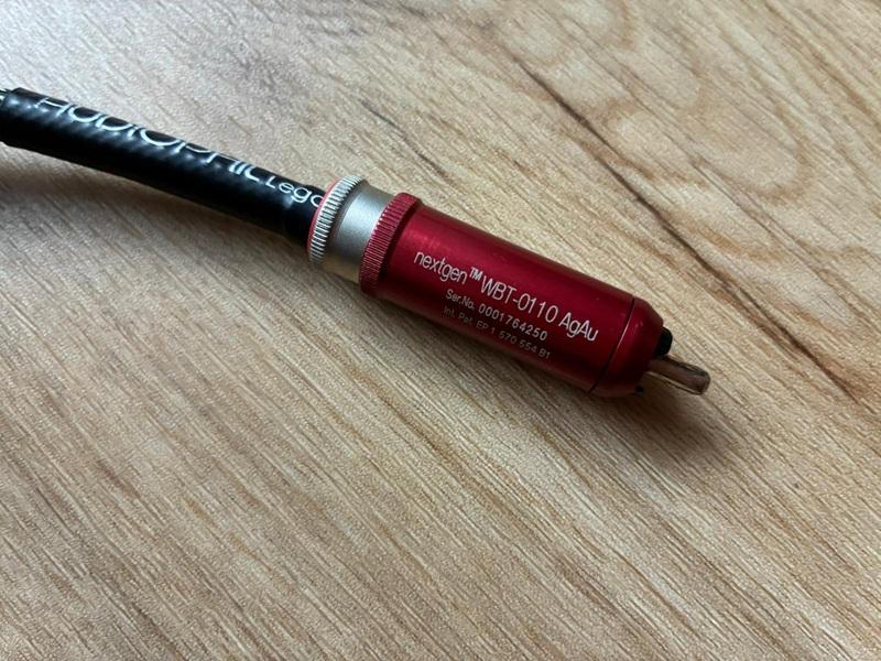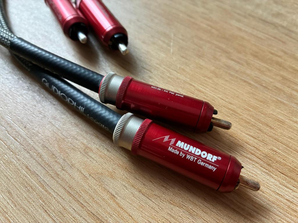 Die Kabel sind aus dem G7 Silber / Gold Leiter gefertigt und mit Mundorf (by WBT) NextGen 0110 AG / AU (Silber / Gold) Steckern konfektioniert.