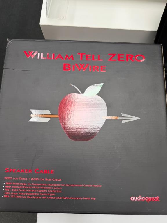 Es handelt sind um ein William Tell Zero (Mittel/Hochton) und William Tell Bass (Bass...logisch), das am Verstärker nur einen Eingang benötigt (McIntosh zum Beispiel) und am Lautsprecher mit dem Bi-Wire Eingang betrieben wird. DIE maximal perfekte Ansteuerung für einen Bi-Wire Lautsprecher (hier B&W 800er Serie).