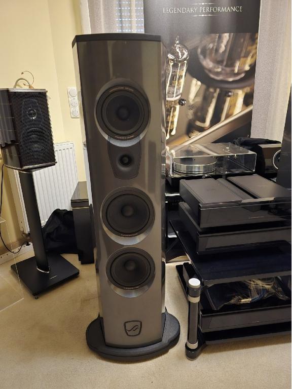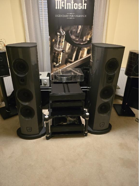 Drivers : 3cm silk dome tweeter, 16.5cm Hard Pulp paper cone mid, two 19cm Hard Pulp cone bass drivers