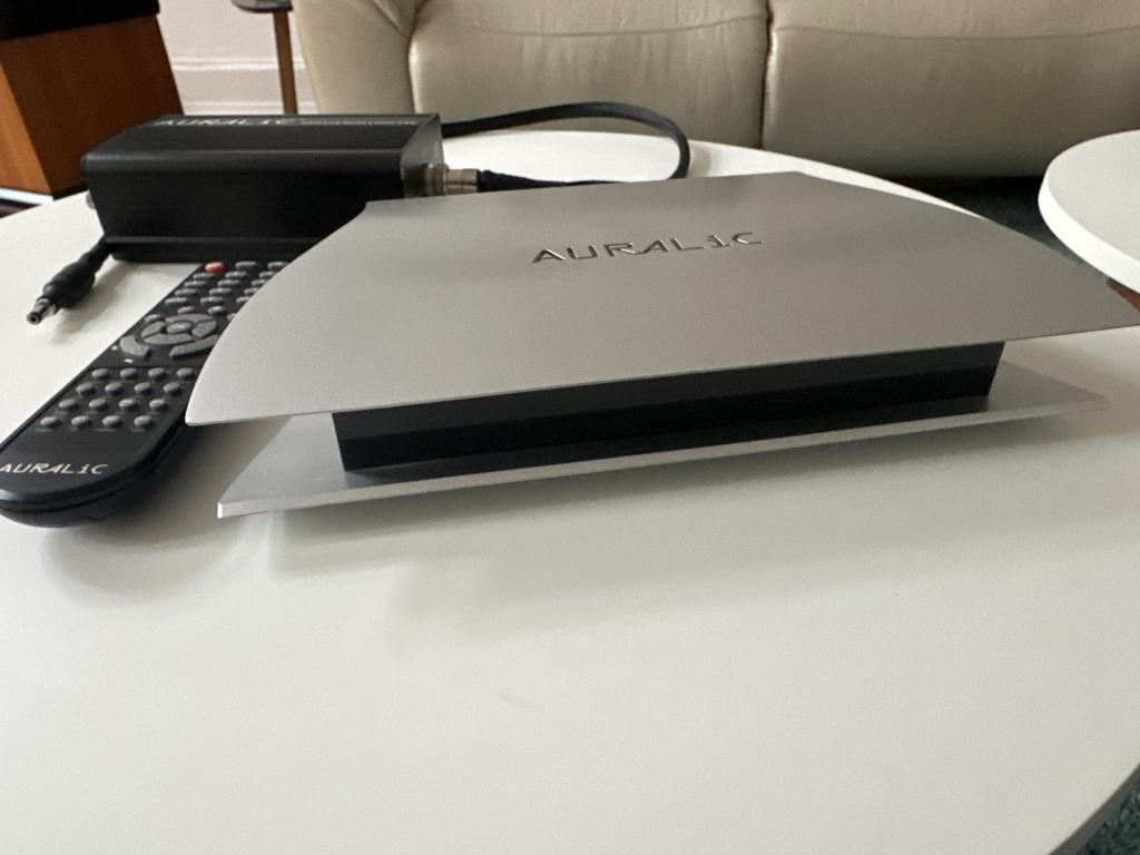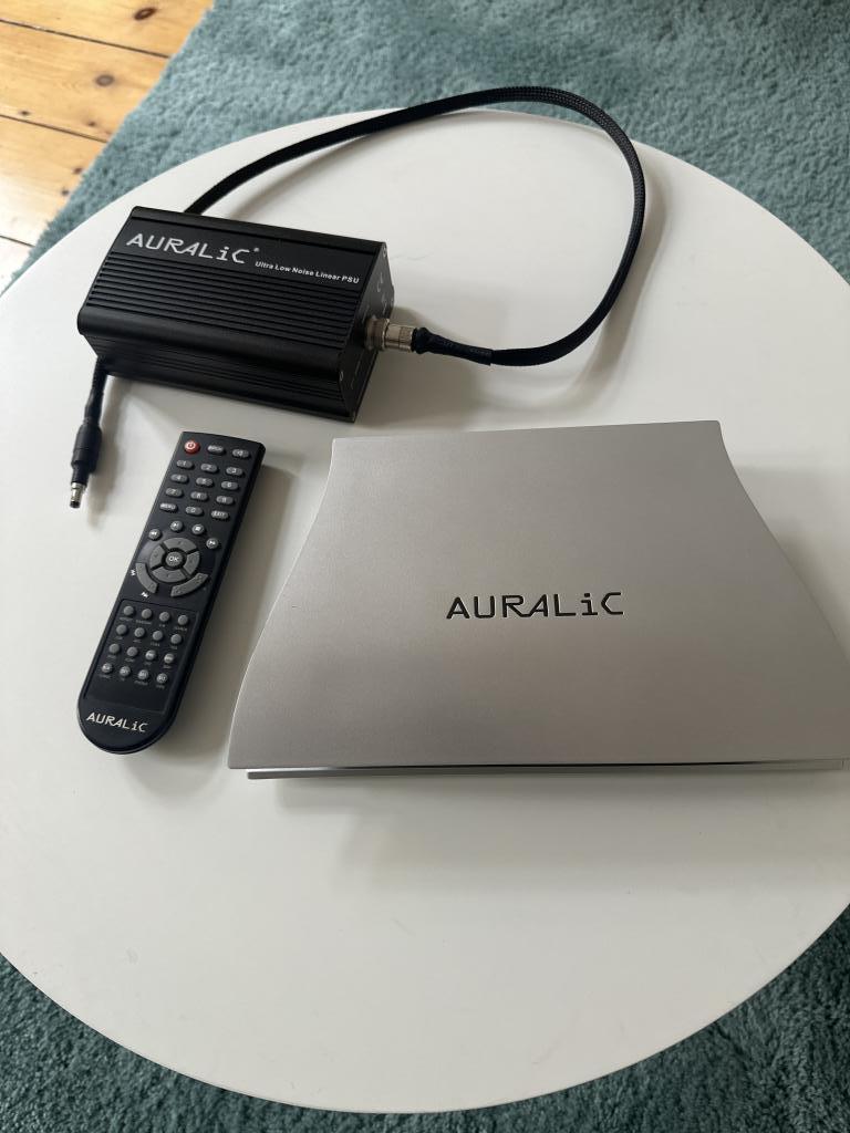 Musik Streamer Auralic Aries Femto, inkl. dem originalen Netzteil und der zugehörigen Fernbedienung, wie auf den Fotos abgebildet.