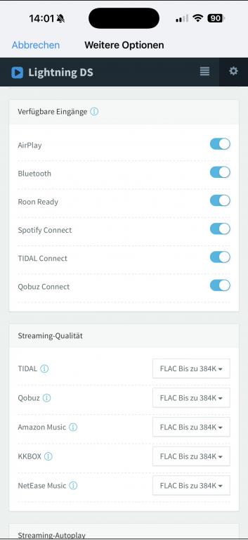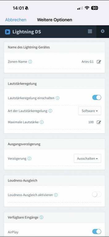Control Software: AURALIC Lightning DS for iOS, for web interface, BubbleUPnP, Kazoo, Roon.