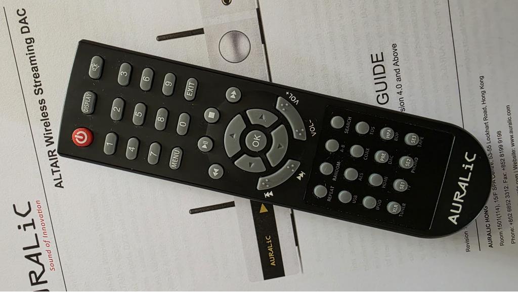 The ALTAIR comes with: remote control (as new), printed manual, antennas (x2) and power cord.