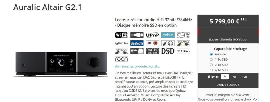 Auralic Streamer dac préampli Auralic Altair G2.1 sous garantie