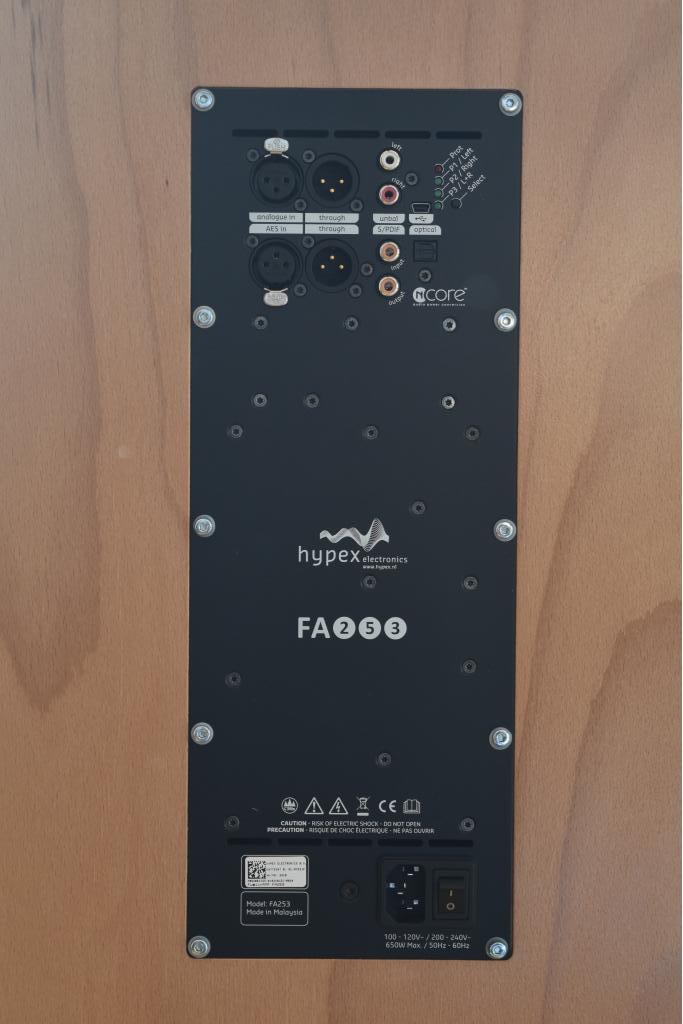 Eingänge digital: AES/EBU (mit loopthrough), Coaxial SPDIF (mit loopthrough, wird auch für die Steuerung der zweiten Box benötigt, Master/Slave),