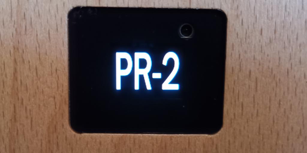 OLED- Display zur Statusanzeige und IR-Sensor an der Frontseite.