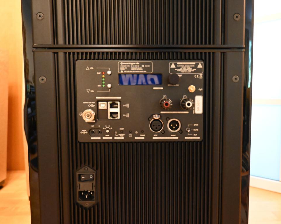 Rückseitig eingebaut ist das aktive Verstärker-System Avantgarde iTRON für Mittel- und Hochton-Horn. Zusätzlich besitzt unser Demo-Gerät die passive Frequenzweiche und das Umschaltmodul, um von Aktiv- auf Passivbetrieb umzuschalten.