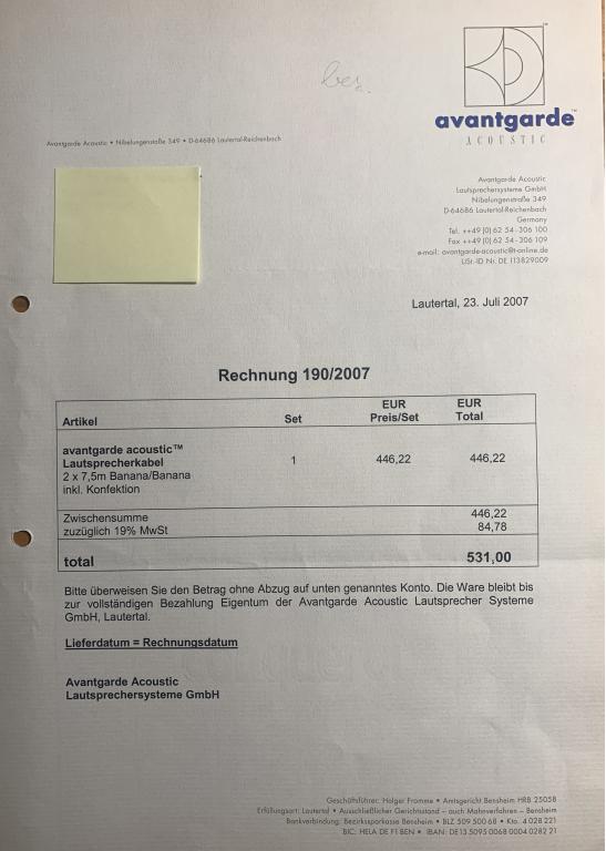 Angeboten wird ein koaxiales Lautsprecherkabel von Avantgarde Acoustic. Die Firma hatte mir das Kabel seinerzeit für meine DUO OMEGA empfohlen, das das Kabel auch zur internen Verdrahtung dieser Lautsprecher genutzt wurde.