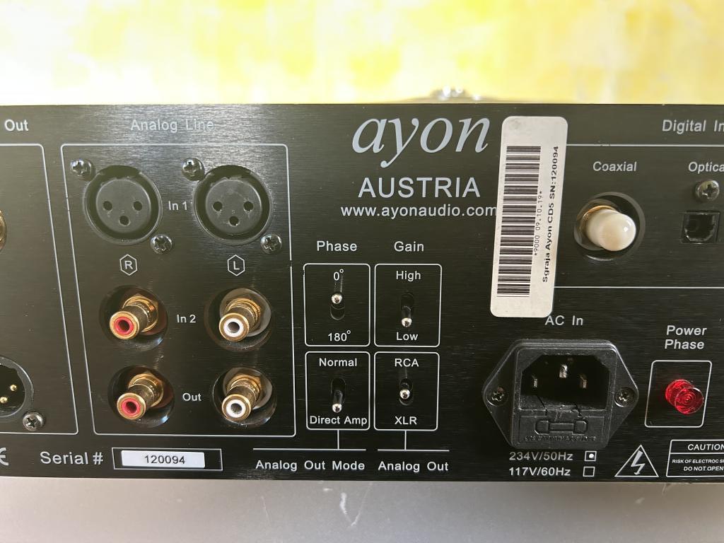 Ayon Audio CD 5s, mit Röhren Ausgangstufe und Phillips CD Pro 2 Laufwerk.