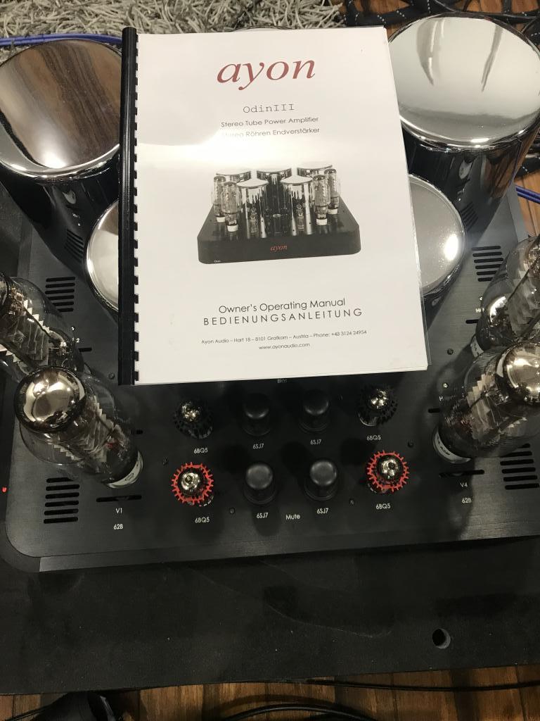 For sale is an AYON ODIN III tube stereo power amplifier. The Odin, a 50 watt per channel direct-fired triode stereo amplifier, is the most advanced tube amplifier made in Austria and is among the best I have ever heard. Its ability to create an open soundstage filled with images of high density and energy, while being highly resolvable yet neutral in tonal balance, was incredible in creating a recording scene. The Odin presented bass that was better defined and more powerful than most transistor amplifiers I have ever heard. The attack, slam and sustain with extraordinary reverberation have a way of transferring the sound to a live performance. (Michael Girardi)