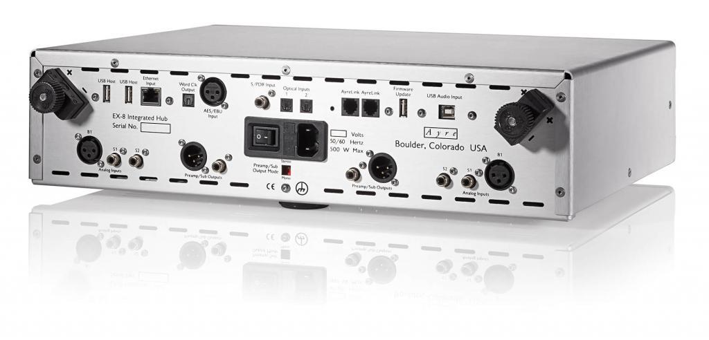 Der Ayre EX-8 ist mit drei Analog-Eingängen sinnvoll ausgestattet und verfügt sogar über einen symmetrischen Kopfhörer-Ausgang. Der optionale D/A-Wandler bietet genügend S/PDIF-Eingänge in allen relevanten Formaten, zusätzlich ist in Kombination ein Streaming-Modul und ein USB-Board erhältlich. Der EX-8 klingt –als Amp und als Wandler – äußerst transparent, dynamisch, nuancenreich und konsistent. Diese Qualitäten bündelt er zu einer Spielweise, die man nur als traumhaft musikalisch bezeichnen kann.