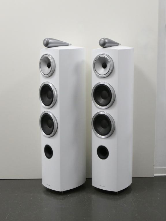 Aus einer Inzahlungnahme bieten wir die B&W 804 D3 in Weiß, technisch und optisch sehr gut erhalten. Bei einem Lautsprecher fehlt das Typenschild (Kleber gelöst) und es gibt eine kleine Macke hinten unten. Klanglich liefert sie beeindruckende Präzision, Dynamik und Detailauflösung der Diamond-Serie.