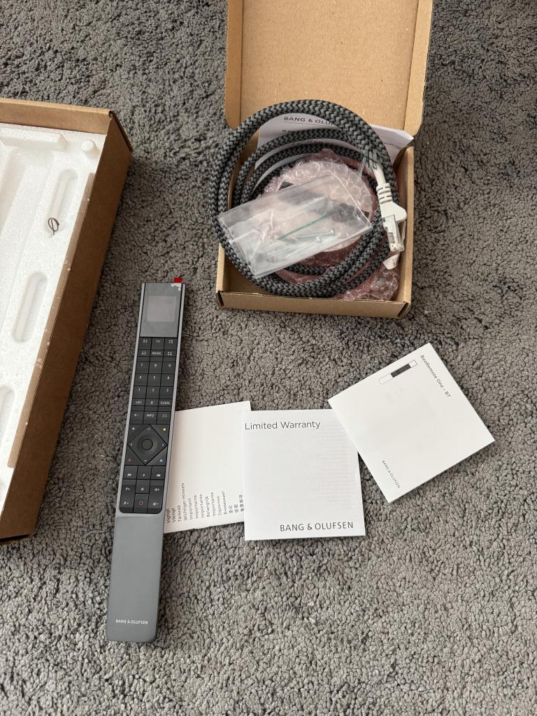 Im Lieferumfang enthalten ist: Das Paar B&O BeoLab 50, Fernbedienung und die originale Verpackung.