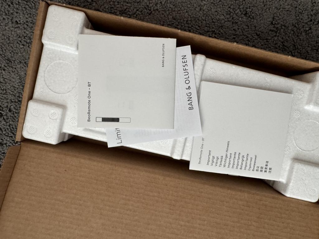 The scope of delivery includes: The pair of B&O BeoLab 50 speakers, remote control, and original packaging.