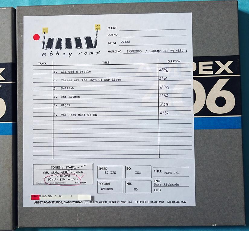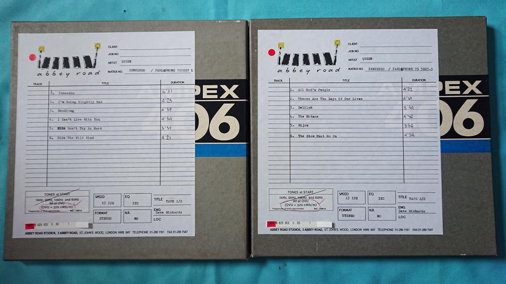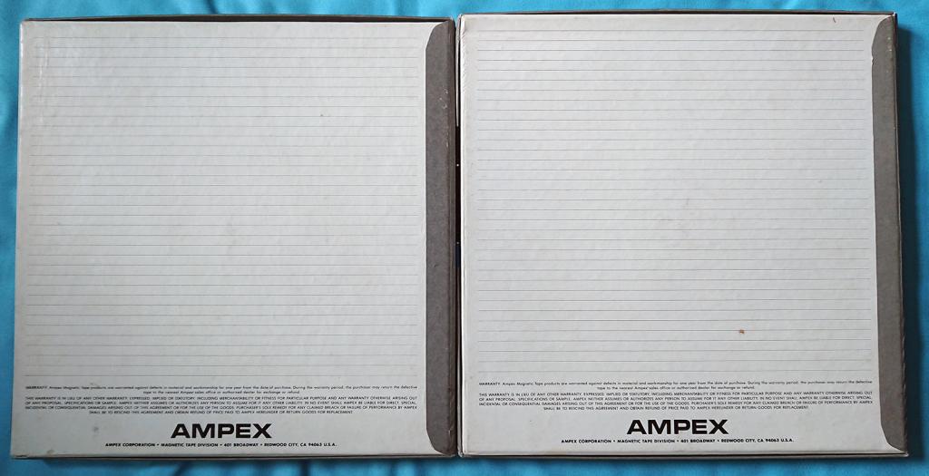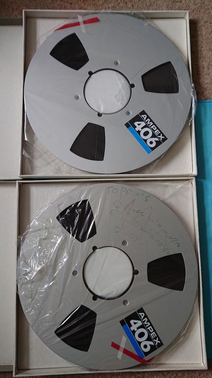 The boxes and the spools are labeled Ampex 406, the magnetic tapes are BASF SM468.