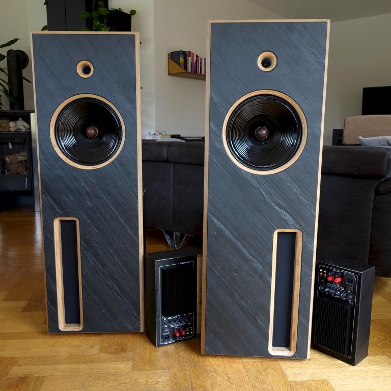 Die Lautsprecher sind im tadellosen neuwertigen Zustand. Mit dem speziellen Bastani-Lautsprecherkabel wurde die „Innenverkabelung“ gefertigt. Weiter liegen Extralängen bei, um den Sub mit dem Modul zu verbinden.