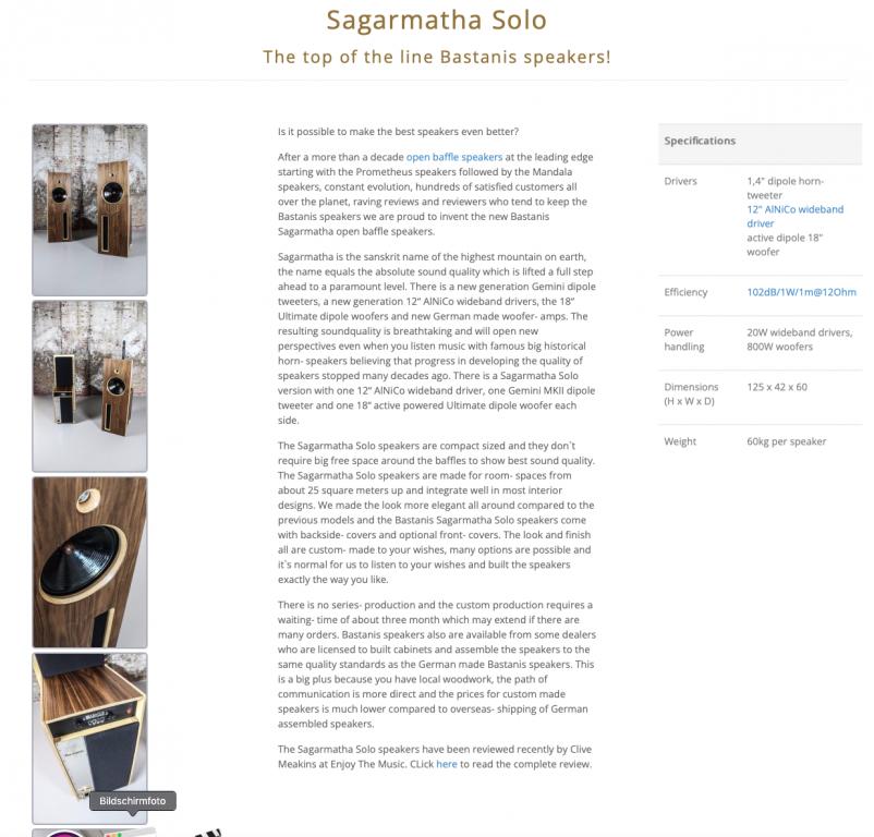 Bastanis Sagarmatha Solo Open Baffle incl. Lieferung